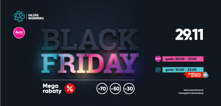 Promocje Black Friday! To już dziś! Zobaczcie jakie promocje w Black Friday oferują sklepy Aury Centrum i Galerii Warmińskiej.